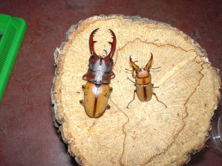 フタテンアカクワガタ♂、大小。これが一番採れた。